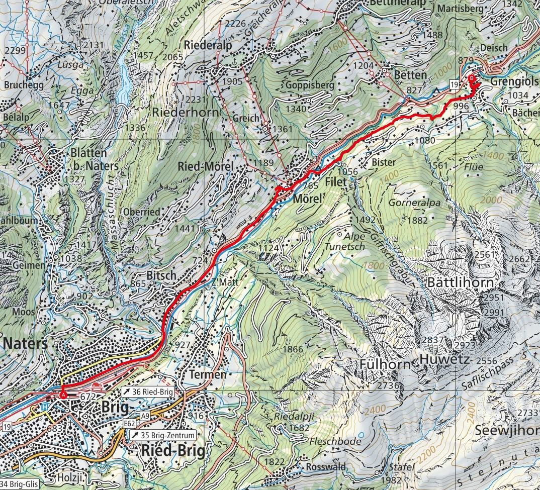 Brig - Naters - Bitsch - Ebnet - Eggelti - Mörel - Gifrisch - Chrizacher - Grengiols