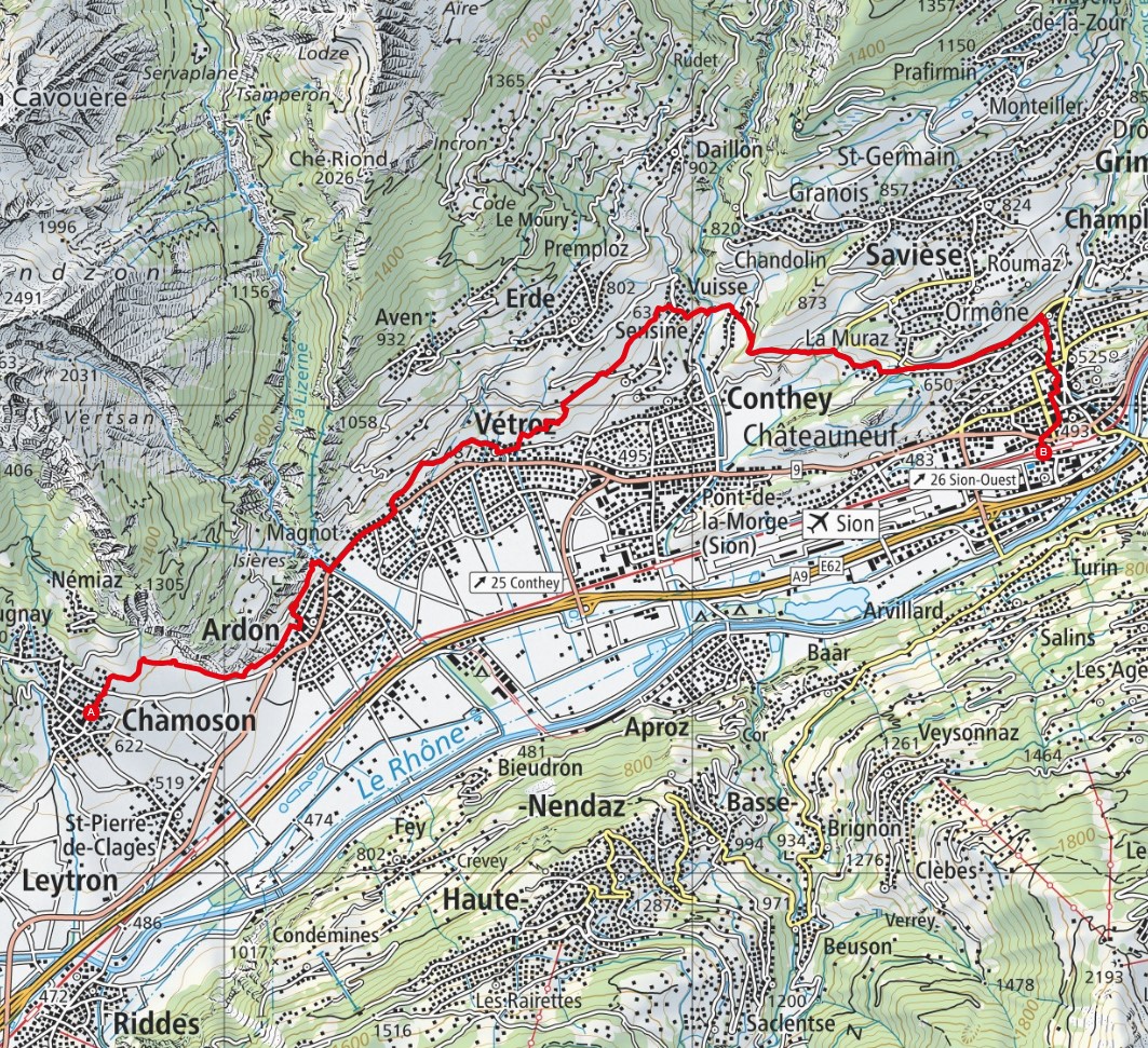 Chamoson - Ardon - Balavaud - Magnot - Vétroz - Le Roulin - St-Séverin - Sesine - Vuisse - Montorge - Sion