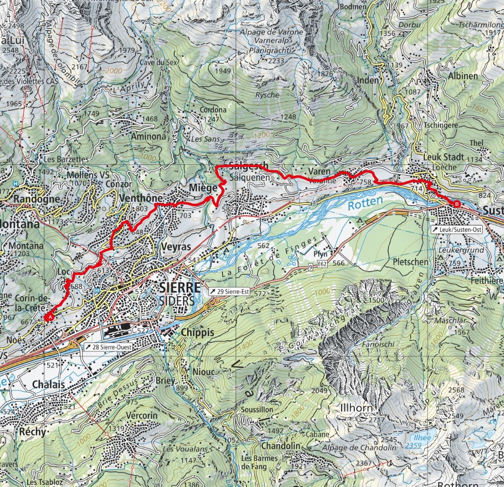 Corin-de-la-Crête - Loc - Anchettes - Venthône - Miège - Salgesch - Grischetu - Varen - Dalabrücke - Leuk Stadt - Leuk