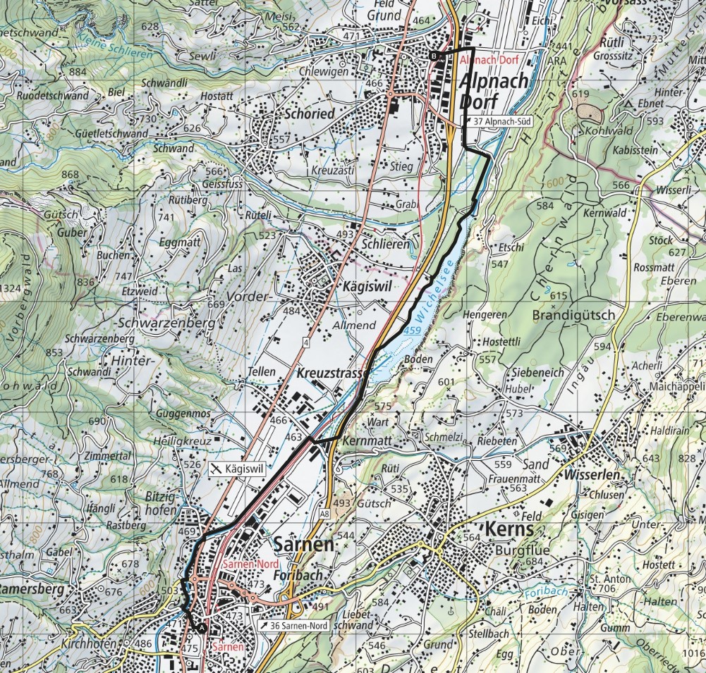 Stansstad - Stansstader Ried - Rotzloch - Ennetmoos - Vorder Rüti - Hinterbergwald - Alpnachstad - Alpnach Grund - Alpnach Dorf - Langenbüelried - Wichelsee - Kernmatt - Bitzighofen - Sarnen