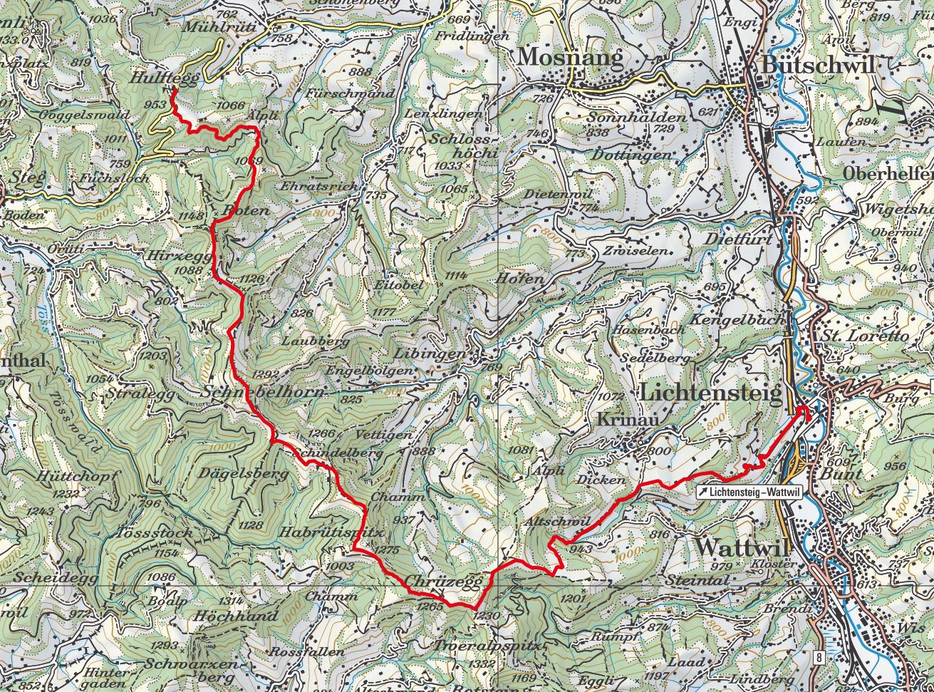 Krinau - Älpli - Schwämmli - Tweralpspitz - Rotstein - Schwammegg - Oberatzmännig - Walde - Oberricken - Ricken