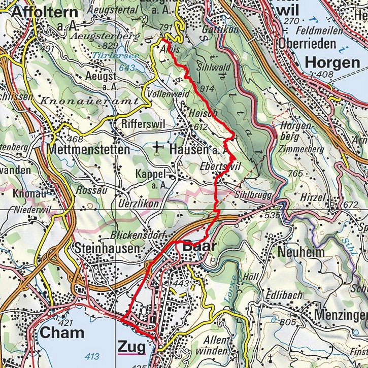 Zug - Cham - Hünenberg See - Dersbach - Buonas - Meierskappel - Dietisberg - Michaelskreuz - Schiffmannshof - Udligenswil - Götzetal - Adligenswil - Würzenbach - Verkehrshaus - Luzern